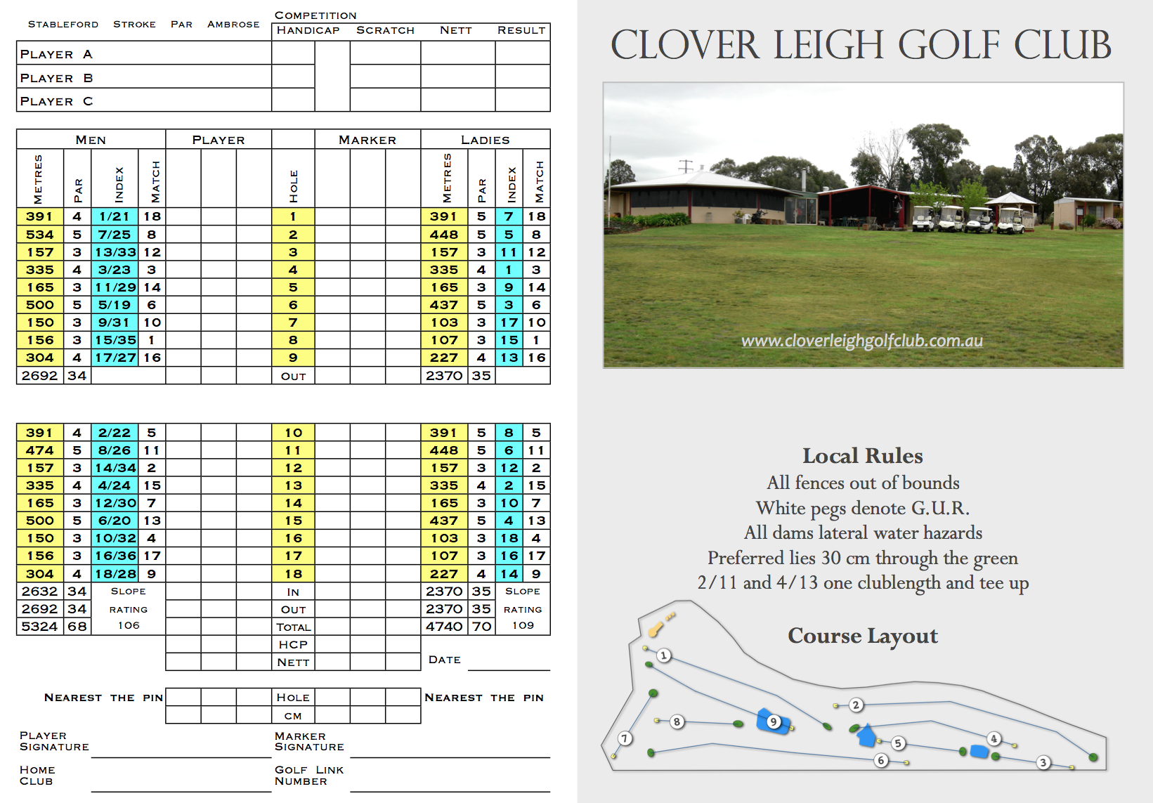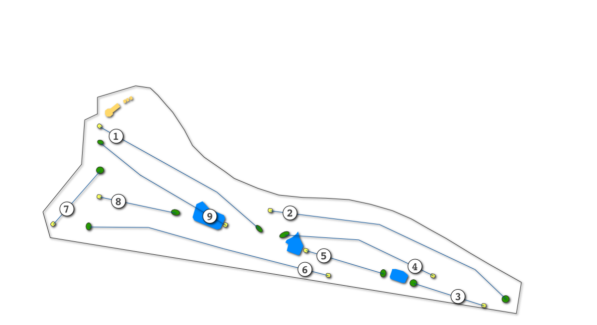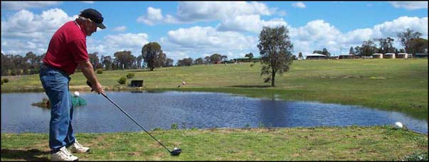 Gentlemen tee off over the dam, ladies in front, then a gentle uphill slope to the green situated near the clubhouse.
